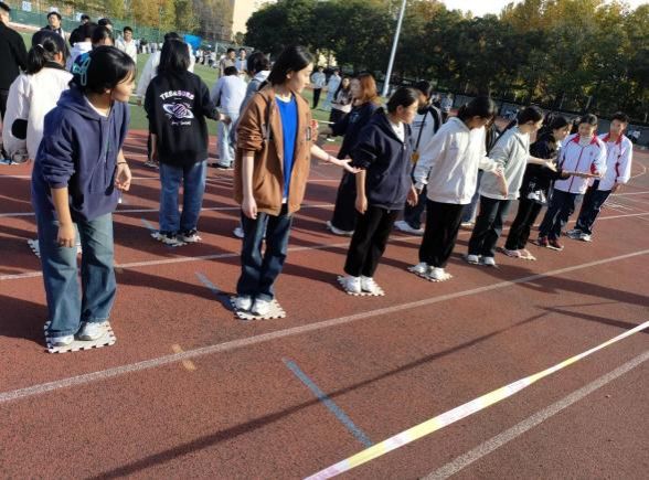 在“十人九足”、“不倒森林”、“接力旋风跑”等九个项目中展现出了非凡的团队协作精神和心理素质。现场氛围热烈,欢呼声与呐喊声此起彼伏。