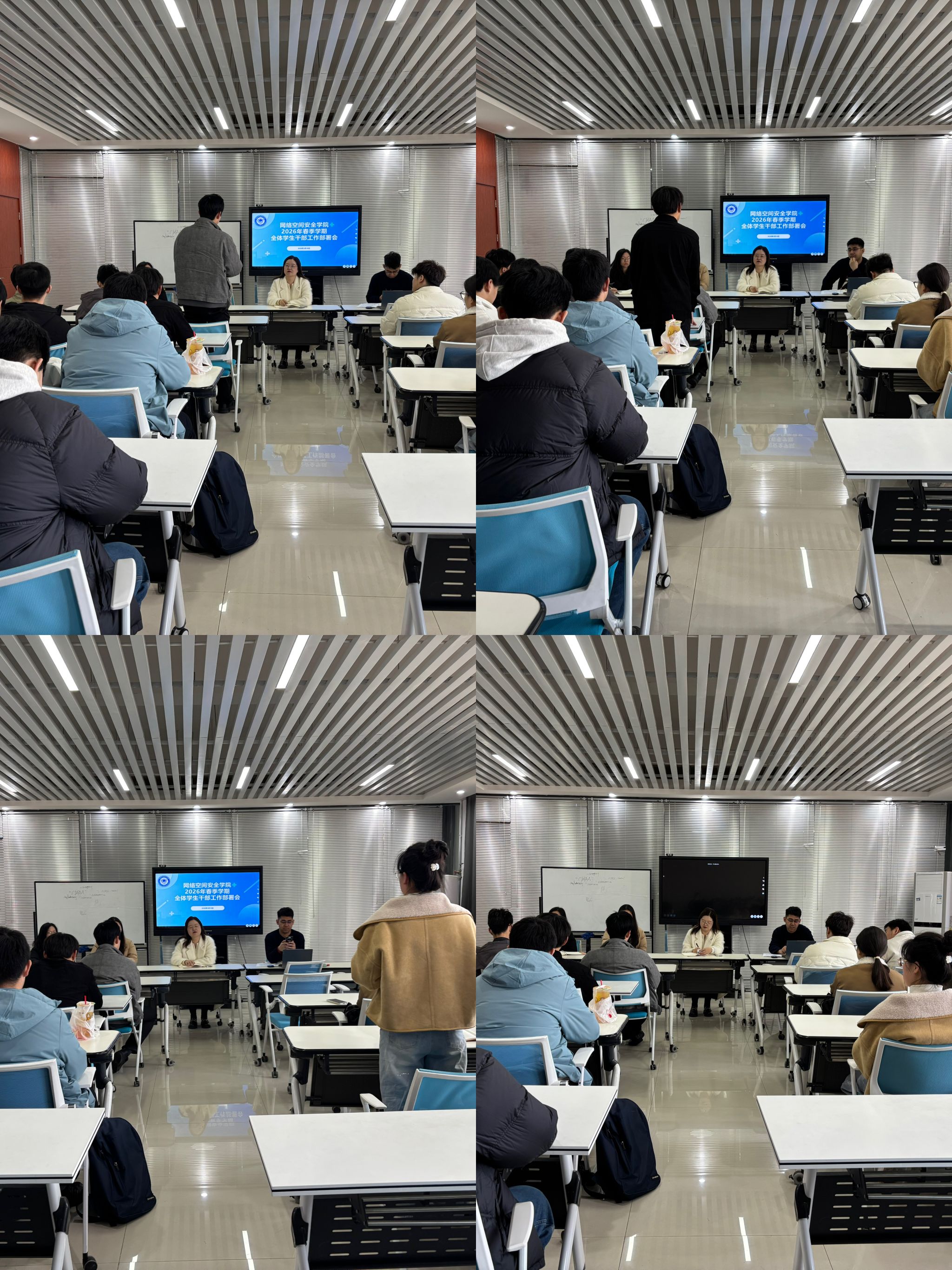 随后,学生会负责人李亦丰、团委负责人荣雨晨、青总负责人周宇依次部署本学期重点工作:学生会明确日常考勤、课堂秩序及宿舍安全检查细则;团委聚焦思想引领、团学联动工作;青总围绕志愿服务与实践拓展开展安排。本硕各班班长也结合班级实际,依次汇报了新学期学风建设、日常管理、班级活动等方面的工作计划。大家表示,将认真履行职责,积极配合学院工作,营造团结向上、勤学奋进的氛围,切实为同学们服务。邢颖与郭政良对各组织及各班的工作部署表示肯定,也为优化工作落实提出具体指导建议,为新学期太阳集团高质量开展奠定坚实基础。